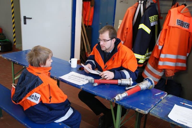 19 Jugendliche stellten sich der Prüfungskommission aus Jugendfeuerwehrwarten und Führungskräften. An acht Stationen musste Feuerwehrwissen und Allgemeinbildung unter Beweis gestellt werden.