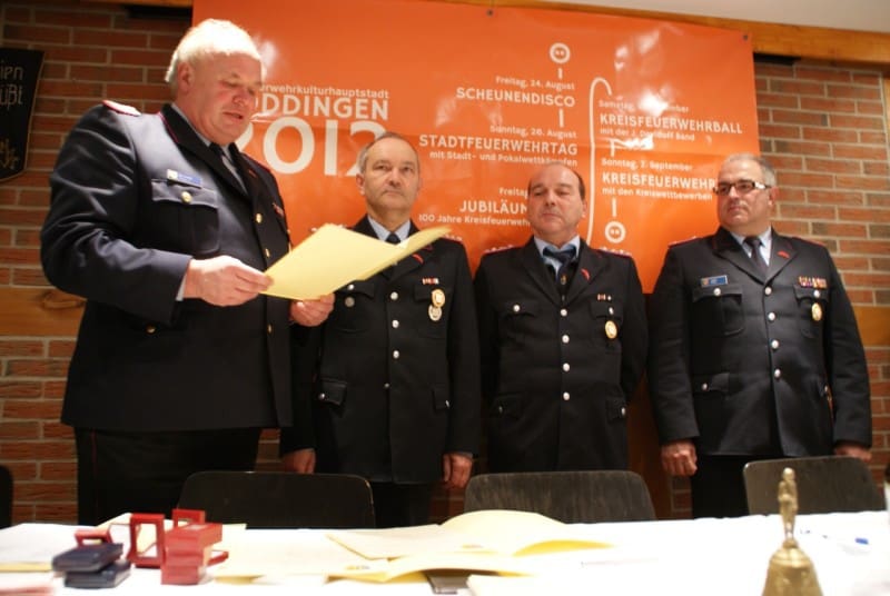 Stadtbrandmeister Henning Banse dankte der Feuerwehr Göddingen für die Aktivitäten im Jahr 2012. Besonders die Veranstaltungen „Göddingen 2012“ – die Wettbewerbe, Jubiläumskommers, Zapfenstreich, Feuerwehrball und Scheunendisco verliefen tadellos!