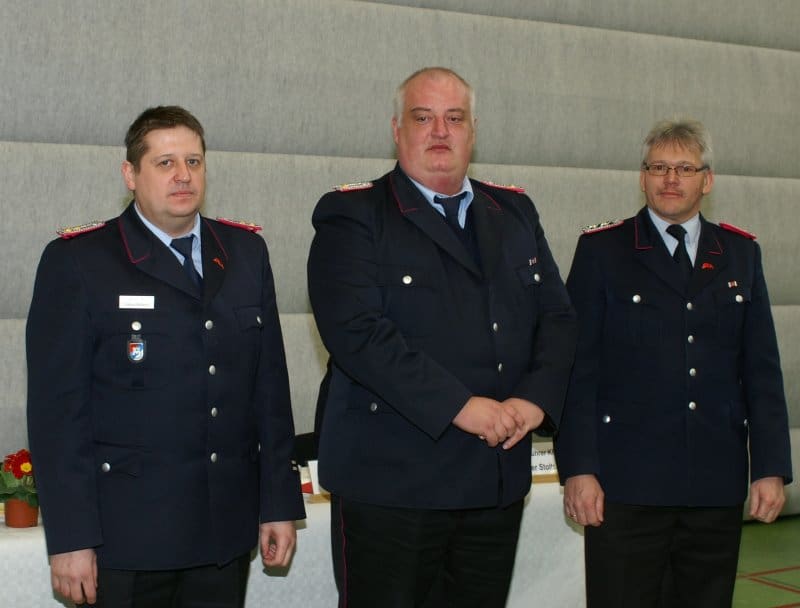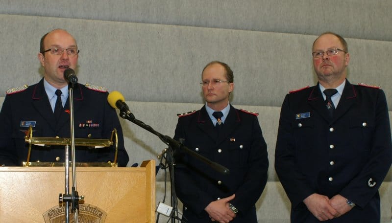 Foto 5: Neu ernannt in Kreisbereitschaft II v.l. : Bereitschaftsführer: Volker Gätjens, stellv. Bereitschaftsführer: Ralf Harst, Zugführer Gefahrgutzug: Sönke Arpe
