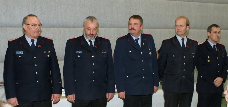 Bei den Gemeindebrandmeistern, Oberlöschmeister Bernd Wehling zum Hauptlöschmeister, Oberbrandmeister Volker Gätjens zum Hauptbrandmeister, Oberbrandmeister Markus Braun zum Hauptbrandmeister, Hauptbrandmeister Dirk Baumann zum ersten Hauptbrandmeister und Hauptbrandmeister Mirko Dannenfeld zum Ersten Hauptbrandmeister.