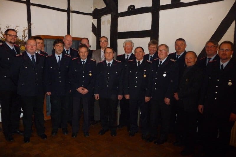 Geehrte, Beförderte, Gäste und Amtsträger der Walmsburger Feuerwehr-Jahreshauptversammlung.