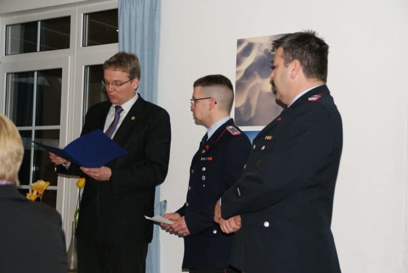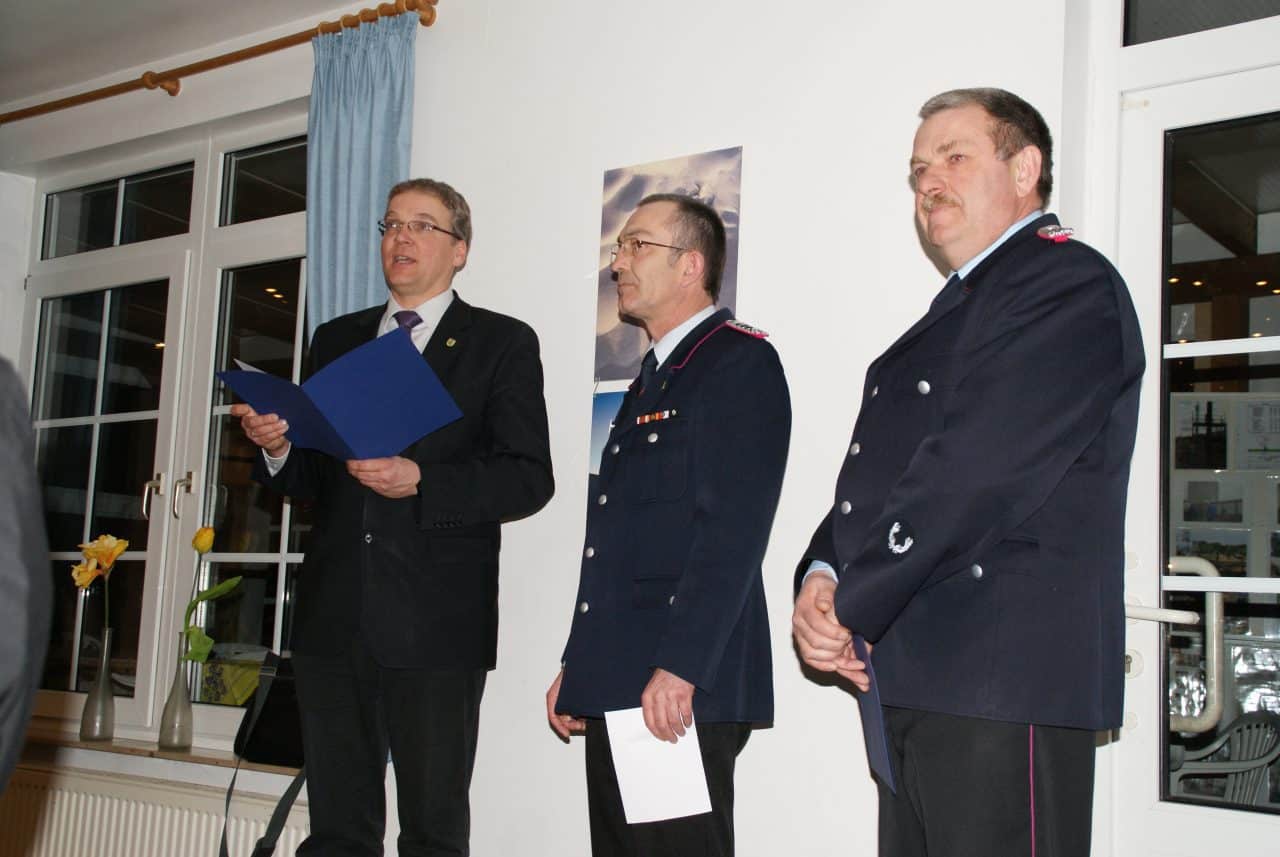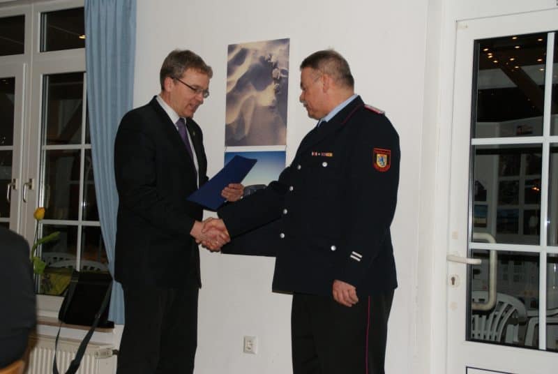 Bürgermeister Jens Böther verabschiedete den Ortsbrandmeister aus Barskamp, Detlef Papke und den Stellv. Ortsbrandmeister der Feuerwehr Wendewisch, Henrik Schulz, zum 31.03.2013 aus dem Ehrenbeamtenverhältnis.