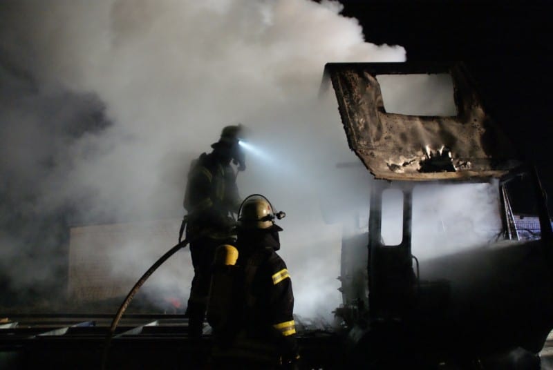 Beim Eintreffen der ersten Einsatzkräfte brannte der LKW in voller Ausdehnung – der Lack war bereits abgebrannt.