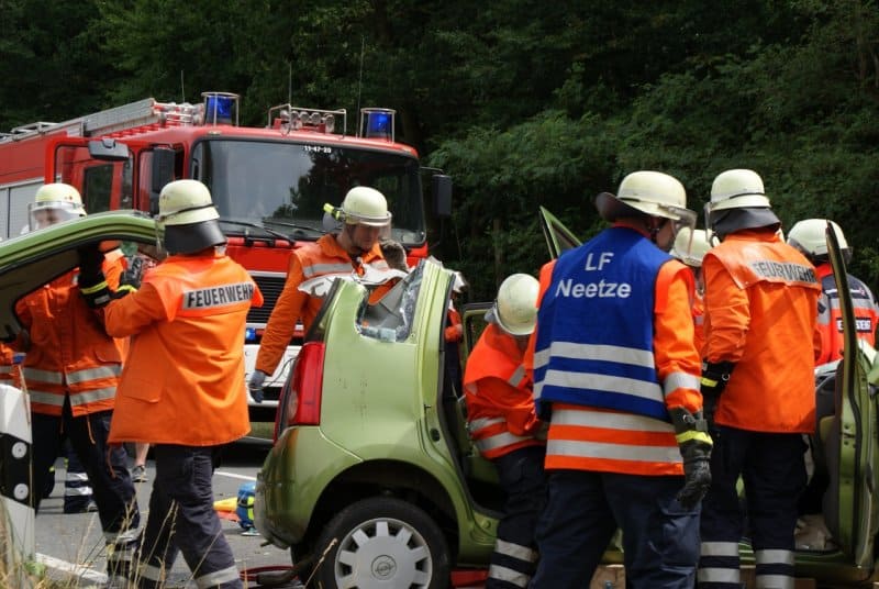 Foto 2: Rettungsarbeiten am PKW – zur schonenden Rettung wurde das Dach entfernt