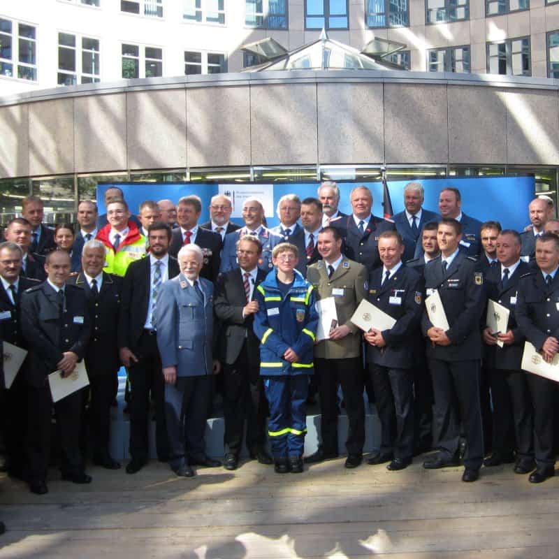 Die Einsatzmedaille „Fluthilfe 2013“ wurde am 24.08.2013 von Bundesinnenminister Dr. Friedrich an 40 Helfer im Hochwassereinsatz verliehen.