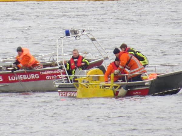 gi Laßrönne. Der Gewässerschutzzug des Landkreises Harburg übte jetzt gemeinsam mit Kräften aus dem Landkreis Lüneburg den Ernstfall. Angenommne Lage bei der Übung: Ein Kutter war bei Stromkilometer 595,5 havariert. Es befinden sich mehrere Personen an Bord, wovon eine eingeklemmt war, zudem hatte das Wasserfahrzeug Gefahrgut geladen, außerdem traten Betriebsstoffe aus. Die Kleinboote aus Hoopte, Marschacht, Laßrönne und Drage hatten die Aufgabe die verletzten Personen von Bord des Havaristen zu retten. Während das Mehrzweckboot der Hoopter Wehr und die Boote der Feuerwehren aus dem Landkreis Lüneburg die Ölsperre legten, um die Uferbereiche der Elbe zu schützen. Weitere Einsatzkräfte der Feuerwehren sicherten in der Zwischenzeit das Gefahrgut auf dem Kutter. Bei dieser Übung sollte nicht nur die Rettung von Personen von einem havarierten Schiff geübt werden, sondern auch das Zusammenspiel mit den Kräften aus dem Landkreis Lüneburg mit der dort stationierten Ölsperre für die Landkreise Harburg, Lüneburg und Lüchow Dannenberg. Weiterhin wurde eine weitere Ölsperre von den Kräften des Gewässerschutzzuges eingesetzt. Besonderes Augenmerk wurde von den Beobachtern auf die Einsatzmöglichkeiten der Ölsperren gelegt und die Einrichtung eines Übergabepunktes für Verletzte am Elbdeich für den Rettungsdienst gelegt. Nach gut zwei Stunden war die Übung beendet. Alle Beobachter zogen am Ende ein durchaus positives Fazit der umfangreichen Übung.