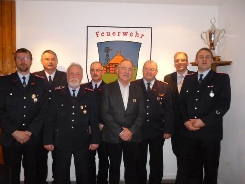 Carsten Banse und Uwe Claus wurden für 40 Jahre Feuerwehrdienst geehrt. Die Abzeichen für 50 Jahre Mitgliedschaft wurden an Ehrenortsbrandmeister Heinrich Jasker und Edwart Grzyb verliehen. Ehrenmitglied Karl-Heinz Hoppe wurde für 60-Jährige Mitgliedschaft geehrt.