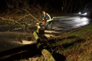 Direkt an der Einsatzstelle mit brennendem PKW wurde ein weiterer „Baum in Schieflage“ entdeckt.