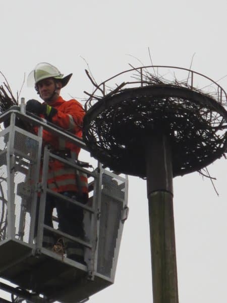Wohnung für Adebar renoviert – Feuerwehr Walmsburg repariert Storchennest