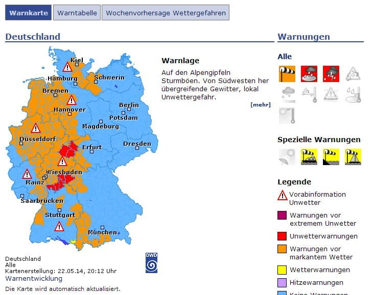 Bild: DWD, 22.05.2014, 20:00