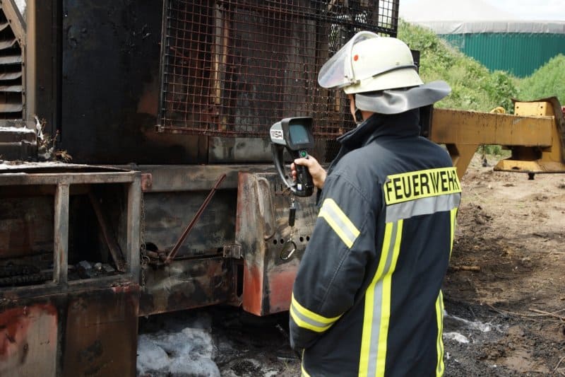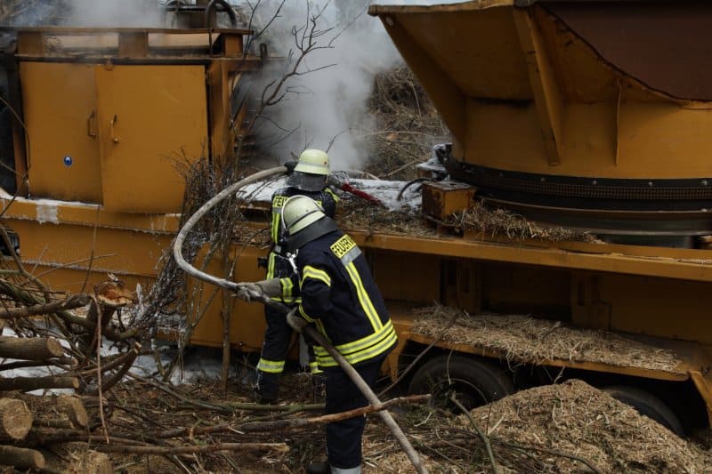 Aufgrund der großen Mengen an Betriebsstoffen in der Schredderanlage setzten die Einsatzkräfte zum Ablöschen Schaum ein. Die Maschine wurde anschließend mit einer Wärmebildkamera auf versteckte Glutnester überprüft.