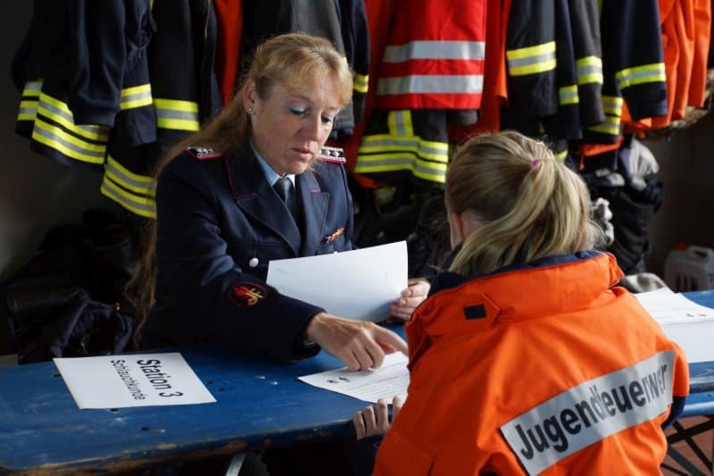 15 Jugendliche stellten sich der Prüfungskommission aus Jugendfeuerwehrwarten und Führungskräften. An acht Stationen musste Feuerwehrwissen und Allgemeinbildung unter Beweis gestellt werden.