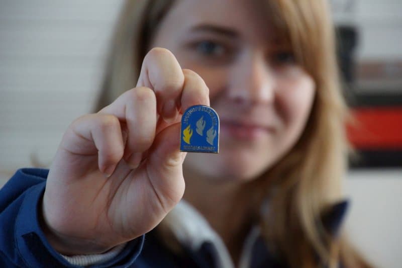 Foto 4: Die Jugendflamme Stufe 1: Die erste Flamme im Abzeichen ist eingefärbt, es folgen die Prüfungen der Stufen 2 und 3.