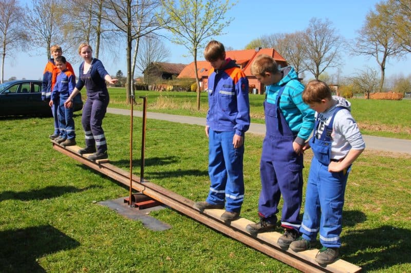 Foto 2: Jugendfeuerwehr Radegast auf der Wippe – wenige Sekunden bis zum Gleichgewicht