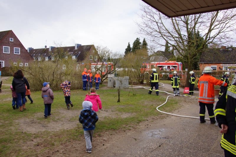 Feuerwehr Bleckede übt am Kindergarten „Sonnenweg“