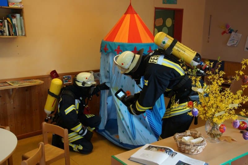 Die Leiterin des Kindergartens, Marika Schmidt, freute sich über die gelungene Übung. „Mit dem Rauch und der Feuerwehr war es für die Kinder sehr aufregend. Die Evakuierung hat wie geplant funktioniert“.