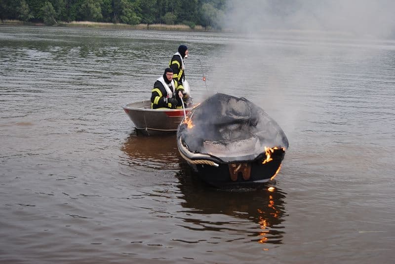 Unfall Elbe, brennt Boot auf Elbe, Personen noch auf dem Boot