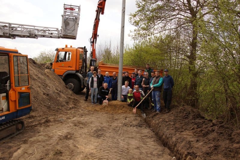 Foto 4: Gruppenfoto nachdem der letzte Lichtmast aufgestellt war