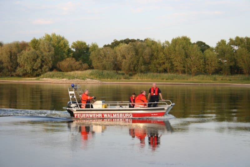Foto 2: Das Boot der Feuerwehr Walmsburg auf der Elbe: Alle „Vermissten“ wurden gerettet