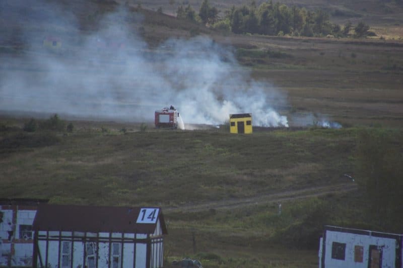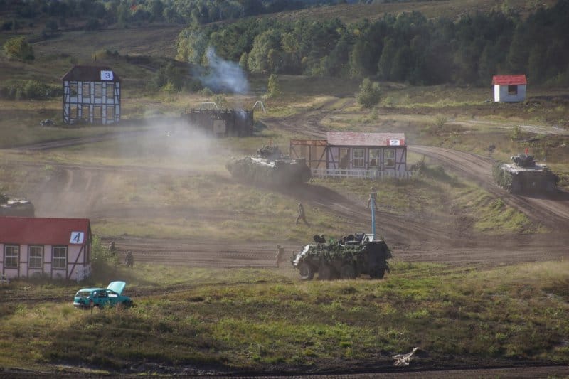 Vor der Tribüne der Schießbahn 1A wurde das breite Spektrum der Bundeswehr gezeigt: Aufklärung durch Tornado-Kampfflugzeuge, Gefechte in „Heidedorf“, Verletztentransport und Mienenräumung.