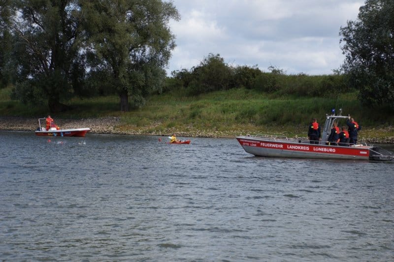 Die Boote der Feuerwehren Bleckede und Walmsburg waren gemeinsam mit der DLRG auf dem Hafen im Einsatz.
