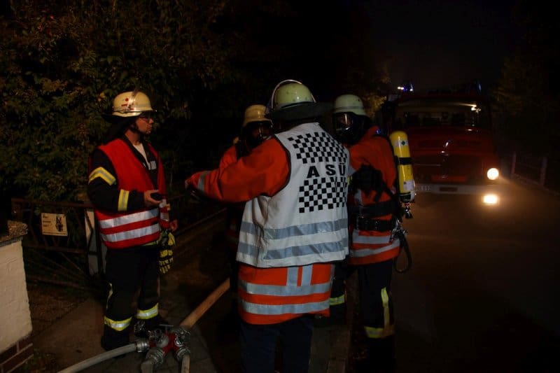 Während die Feuerwehr den Löschangriff vorbereitete, kümmerte sich der bereits eingetroffene Rettungsdienst die zwei Erwachsenen und drei Kinder: Alle blieben unverletzt.