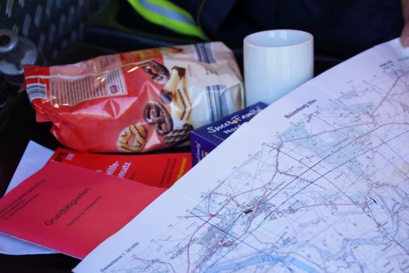 Foto 4: Waldbrandeinsatzkarte, Kaffee und Kekse … Die erforderlichen Utensilien für eine erfolgreiche Funkfahrübung