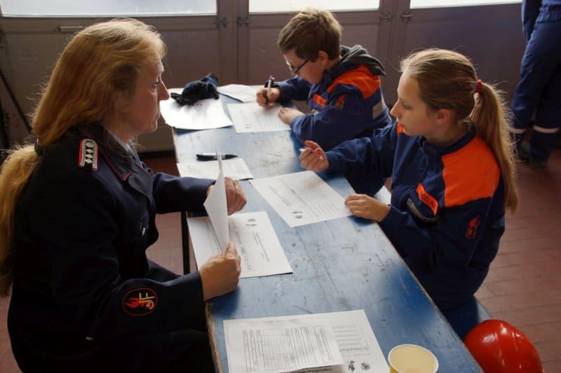 17 Jugendliche stellten sich der Prüfungskommission aus Jugendfeuerwehrwarten und Führungskräften. An acht Stationen musste Feuerwehrwissen und Allgemeinbildung unter Beweis gestellt werden.