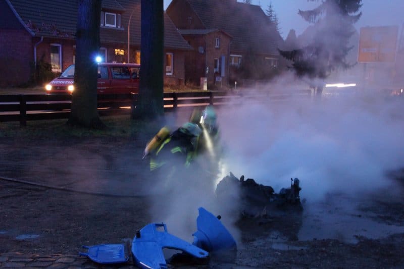 Der Papiercontainer im Schuppen vor dem Jugendfreizeitheim brannte – ein umsichtiger Passant meldete das Feuer und zog nach erfolgtem Notruf den Papiercontainer aus dem Schuppen heraus. So konnte größerer Schaden verhindert werden – Vielen Dank!