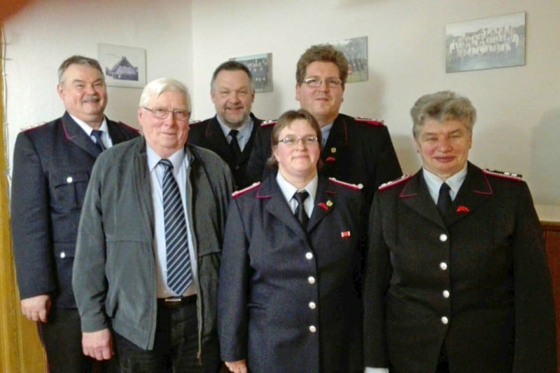 Foto, von links: Stellv. Stadtbrandmeister Hermann Blanquett, Stellv. Bürgermeister Uwe Ahrens, Ortsbrandmeister Christoph Samtleben, Frauke Motylewski, Carsten Herbst, Anneliese Ahlert