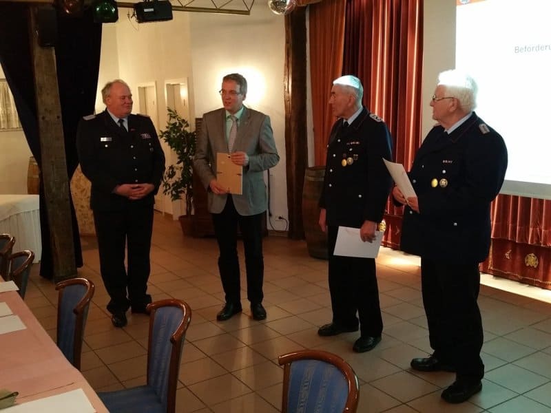 Stadtbrandmeister Henning Banse dankte der sehr aktiven Feuerwehr für die geleistete Arbeit im vergangenen Jahr. Der Stadtbrandmeister ehrte Manfred Kruse und Harry Piehl für 50 jährige Mitgliedschaft in der Feuerwehr sowie Horst Ramm und Wilhelm Spittau für 60 jährige Mitgliedschaft in der Feuerwehr.