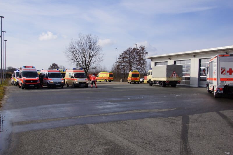 Heute Mittag besuchte die DRK-Bereitschaft sowie die SEG von DRK und ASB mit 13 Fahrzeugen und 30 Einsatzkräften das Feuerwehrhaus Bleckede.