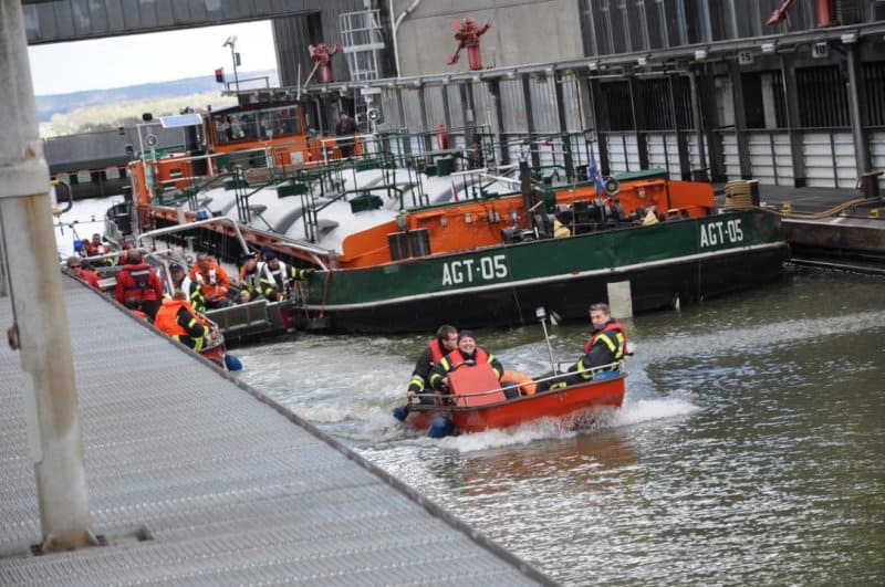 Am Sonntag ging es dann bei teilweise strahlendem Sonnenschein auch für die Feuerwehrboote „zu Wasser“. Der Ölabwehrzug sowie der Gewässerschutzzug der Kreisbereitschaft II, die Feuerwehren Lauenburg und Boizenburg trafen sich im Artlenburger Hafen. Hier wurden alle Boote zu Wasser gelassen und fuhren dann über die Elbe und den Elbeseitenkanal zum Schiffshebewerk. Unterwegs wurden von einer Brücke die Boote zur Erinnerung an diesen Tag fotografiert. Im Hebewerk erfolgte dann ein Schleusen in den Oberhafen. Hier wurde die Mehrzahl der Boote dann wieder auf ihren Trailern verlastet. Im Anschluss ging es zu einem gemeinsamen Grillen zur Feuerwehr nach Lüneburg.