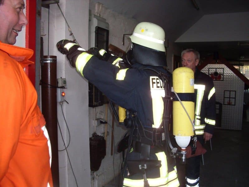 Dies war eine anspruchsvolle Übung für alle Teilnehmer. Die Einsatzkräfte wurden körperlich sehr gefordert und an die Belastungsgrenze gebracht. Am Ende war nicht mehr viel Luft in den Flaschen – bei einigen reichte die Luft nicht für alle Aufgaben. Nach dem Wechsel der Atemluftflaschen war die Übung beendet.
