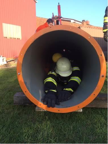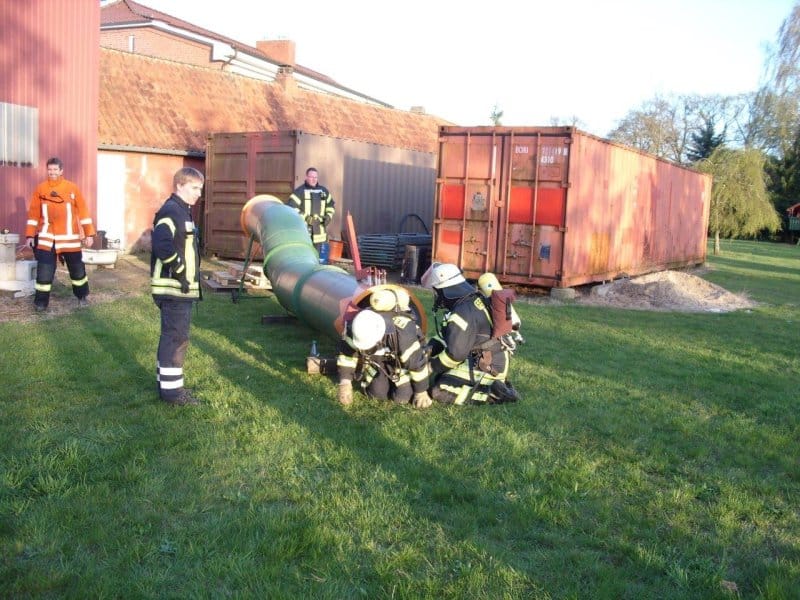 In Anschluss an die Suche mussten die Atemschutztrupps ein fünf Meter langes Rohr durchqueren. Das funktioniert nur mit Teamwork und fördert die Kommunikation untereinander.