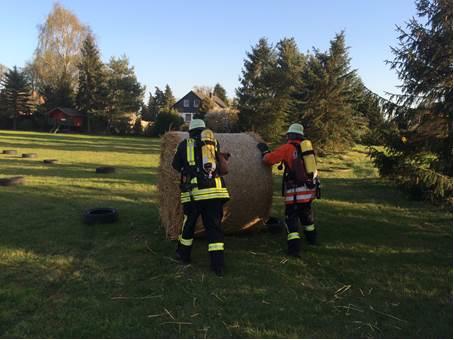 An der vierten Station mussten die Einsatzkräfte einen Rundballen durch einen vorgegebenen Parcours rollen.