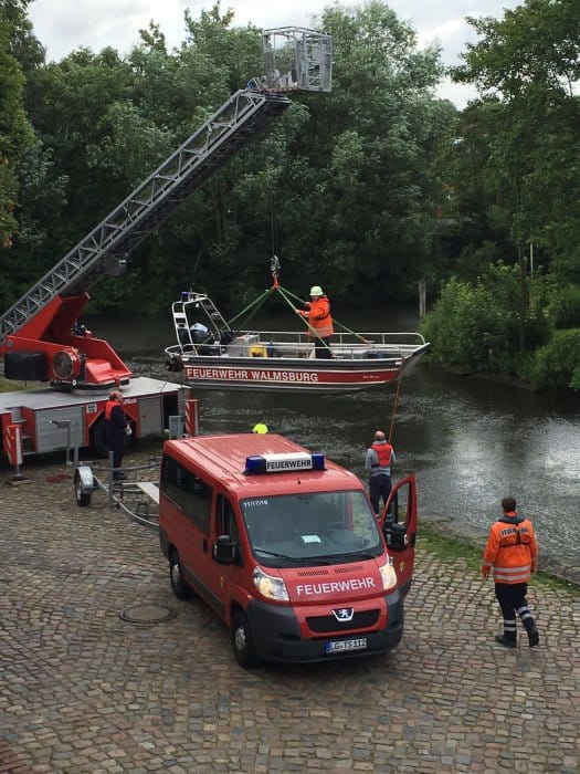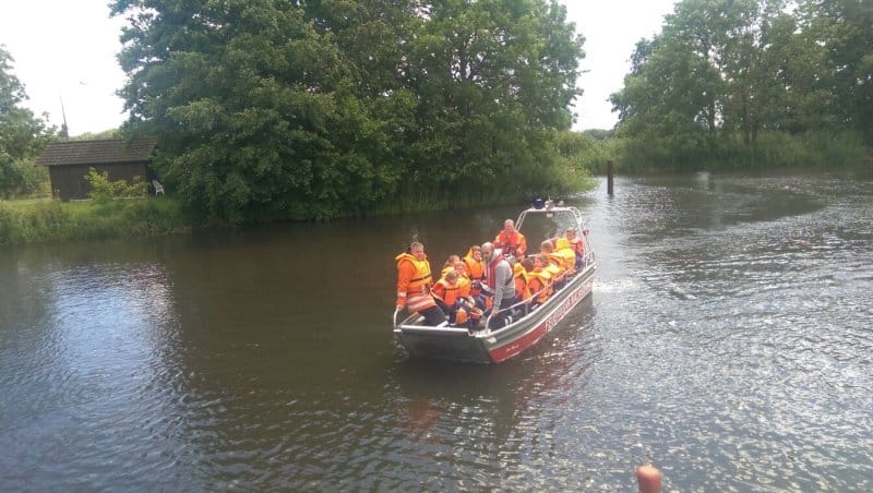 Mit dem Mehrzweckboot müssen alle Teilnehmer bei der Schleuse die Ilmenau überqueren.