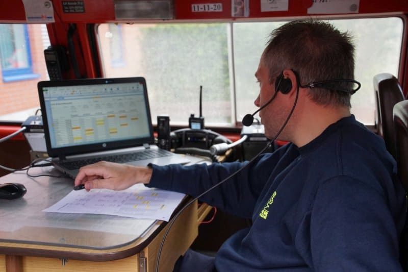 Um die Aufgaben zu erreichen musste der Standort mittels Koordinaten auf der Waldbrandeinsatzkarte ermittelt werden. Im Einsatzleitwagen der Feuerwehr Bleckede wurden die elf Fahrzeuge koordiniert.
