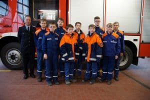 Foto 2: Alle Teilnehmer mit Stadtjugendfeuerwehrwart Henrik Schulz
