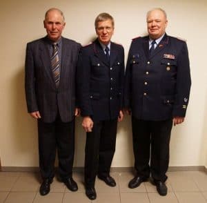Foto 2, von links: Stellv. Bürgermeister Herbert Beusch, Ortsbrandmeister Friedhelm Hinrichs und Stadtbrandmeister Henning Banse