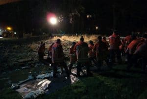 Mit 260 Einsatzkräften wurde die Grabenböschung bis in die frühen Morgenstunden gesichert.