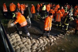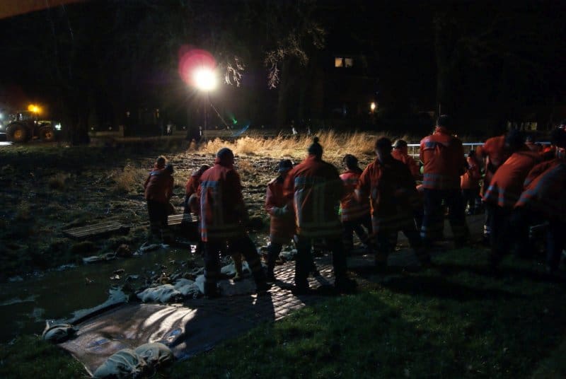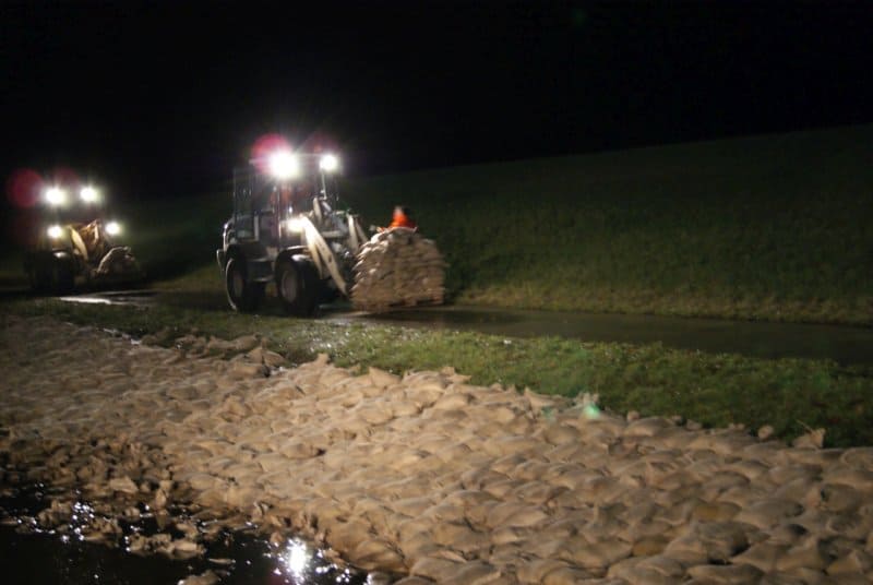 Der Ort wurde erfolgreich mit provisorischen Deichen und vielen Tausend Sandsäcken geschützt.