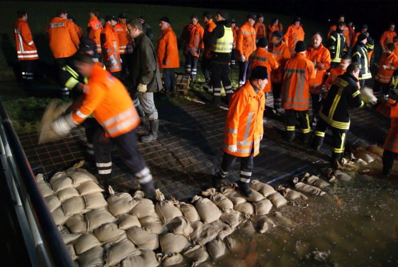 In der Nacht wurden 15.000 Sandsäcke verbaut und eine Reserve von 20.000 Sandsäcken am Feuerwehrhaus Bleckede angelegt.