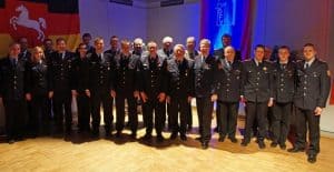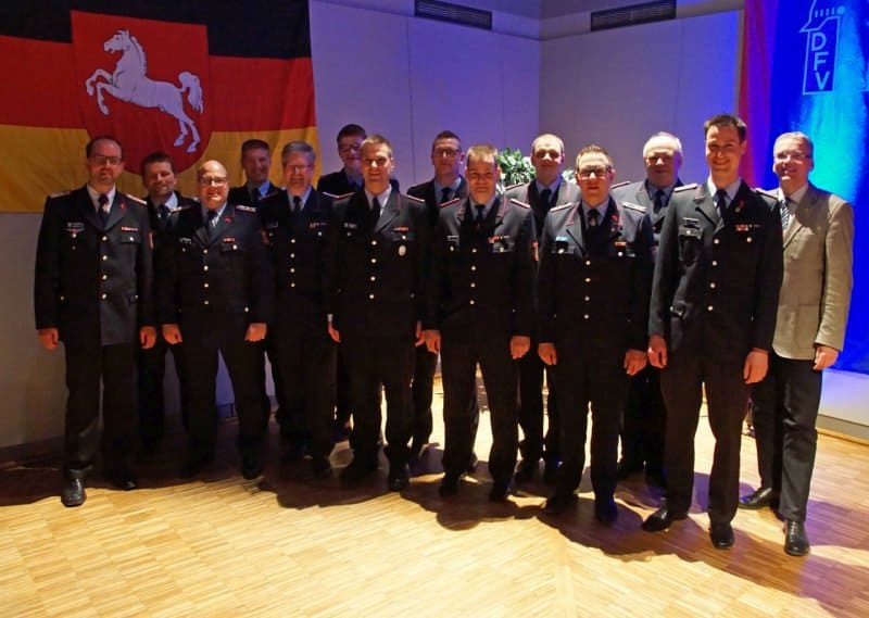 Foto 2, Ehrungen/ Beförderungen, von links: Torben Neuse, Stellv. Ortsbrandmeister Lorenz Reimers, Alina Wolf, Jan Schuhart, Stefan Deetz, Lucien Bera, Sebastian Gödecke, Henning Wanke, Dennis Kiesewalter, Jens Albrecht, Michael Meyer, Christian Kröpke, Stadtbrandmeister Henning Banse, Ehrenstadtbrandmeister Wilhelm Warner, Bürgermeister Jens Böther, Ortsbrandmeister Joachim Meins, Carsten Gieseler, Friedrich-Wilhelm Näfke, Jan Schulz, Mike Pries, Eike Karstens und Pascal Jäckel