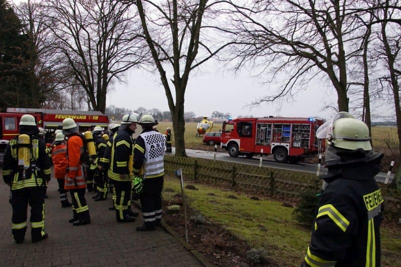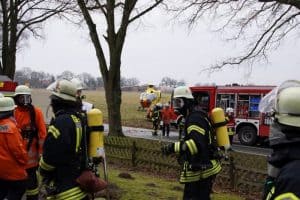 Alarmierung für den 1. und den 2. Zug der Stadtfeuerwehr Bleckede am Montagmittag: Das Einsatzstichwort lautete: B4Y – Gebäudebrand. Die Alarmierung zu einem Gebäudebrand mit Menschengefährdung in ein Pflegeheim bei Barskamp war der Auftakt zu einem umfassenden Einsatz von Feuerwehr, Polizei und Rettungsdienst direkt an der L222 zwischen Bleckede und Dahlenburg.