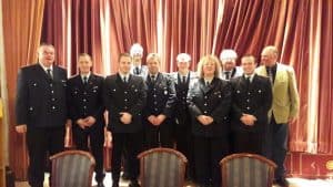 Foto 1, von links: Stellv. Stadtbrandmeister Hermann Blanquett, Jürgen Dethlof, Daniel Blaut, Stellv. Ortsbrandmeister Wolfgang Ulex, Harald Blaut, Daniel Langhammer, die zukünftige Stellv. Ortsbrandmeisterin Carola Bullmann, Hartmuth Müller, Marc Langhammer, Stellv. Bürgermeister Herbert Beusch