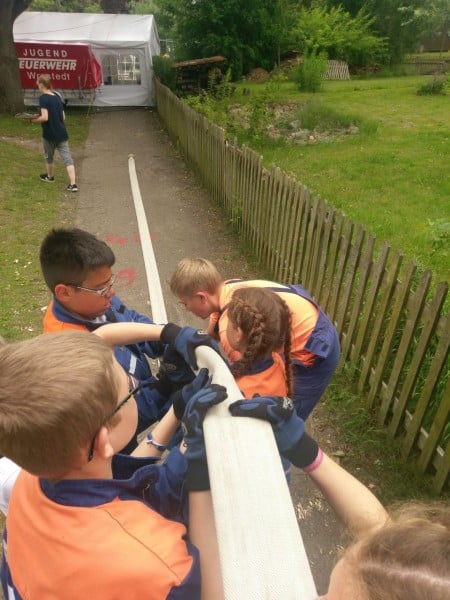 Das war denn auch genug Arbeit für heute: Die Jugendfeuerwehr Bleckede ist jetzt auf dem Weg ins Schwimmbad …