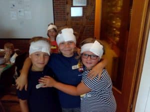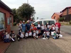 Nicht erschrecken: Die Verbände auf den Fotos wurden nur zu Übungszwecken angelegt. Das aber hochprofessionell – von Kindern im Grundschulalter! Diese 19 Kinder der Kinderfeuerwehren Göddingen/Alt Garge und Walmsburg wissen nun, was im Ernstfall zu tun ist. Dafür haben sie am Freitag, dem 23. Juni, gemeinsam einen zweistündigen Erste-Hilfe-Kurs des Deutschen Roten Kreuzes im Göddinger Feuerwehrhaus absolviert. Wie es sich für die Kinderfeuerwehren gehört, kam dabei auch der Spaß nicht zu kurz, und auch die Betreuer wurden im wahrsten Sinne des Wortes mit „eingebunden“. Am Ende konnten alle stolz ihre Helfer-Urkunde präsentieren.