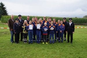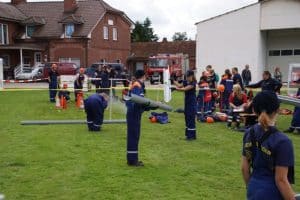Am Sonntag kamen zehn Jugendfeuerwehrgruppen zum „Spiel ohne Grenzen“ anlässlich des 40-jährigen Bestehens der Jugendfeuerwehr. Am Vormittag und am Nachmittag mussten jeweils sieben Spiele absolviert werden. Auch das Wetter spielte mit: Während des Wettbewerbs war es trocken – nur vor der Siegerehrung gab es einen kurzen Regenschauer.