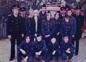 Foto 2: Ein Foto aus den Anfängen der Jugendfeuerwehr Garze, links Ortsbrandmeister Manfred Kruse und rechts der erste Jugendfeuerwehrwart Hans-Wilhelm Stabe